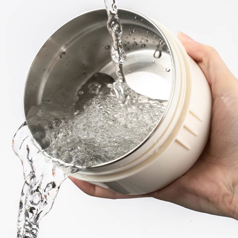 El tanque interno de acero inoxidable tiene una superficie lisa, que no es fácil de pegar los residuos de alimentos y las manchas de aceite, y es fácil limpiarlos. Se puede limpiar fácilmente enjuagando con agua limpia o usando un detergente de lavavajillas ordinario.