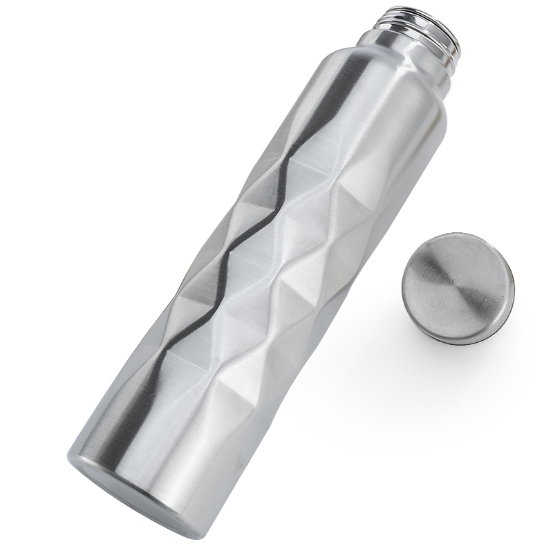 Botella de agua de acero inoxidable con patrón de diamante texturizado