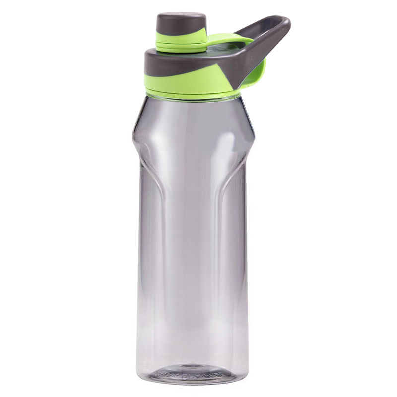 Estas son fotografías detalladas de una botella de agua deportiva. La botella cuenta con una cómoda tapa abatible con un mecanismo de bloqueo seguro que garantiza un rendimiento a prueba de fugas. También hay un práctico asa de transporte para facilitar su transporte. El cuerpo de la botella tiene un diseño ergonómico y se adapta cómodamente a la mano. Hecho de plástico duradero y de alta calidad, es adecuado para diversas actividades al aire libre y uso diario.