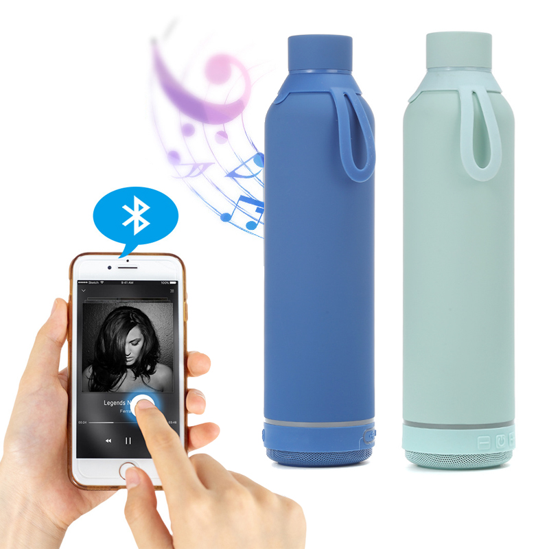 Descripción del producto: Botella aislada con altavoz Bluetooth y mango de silicona: hidrata y mermelada con portabilidad sin esfuerzo