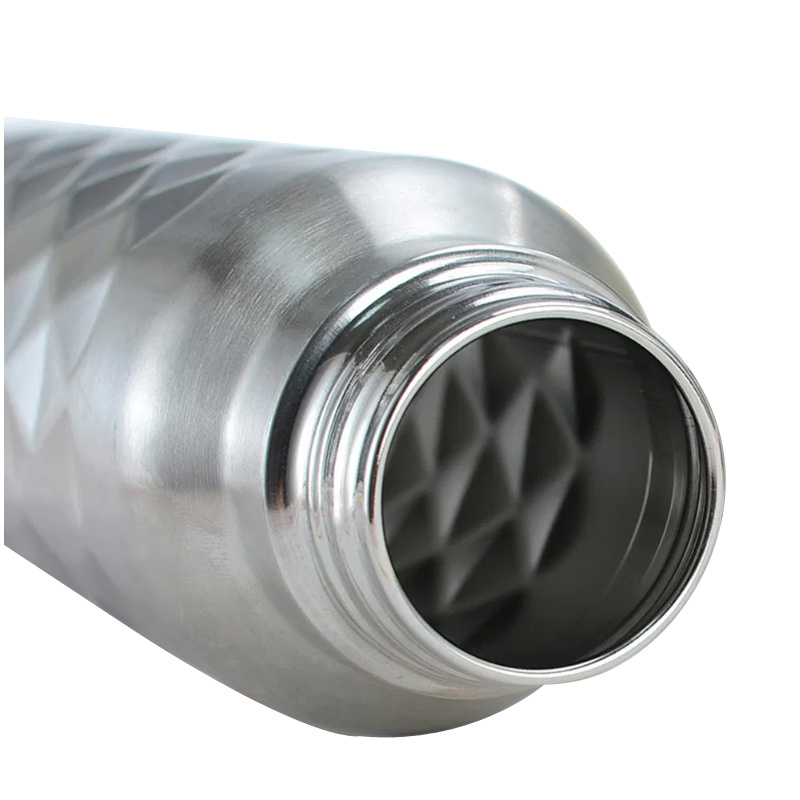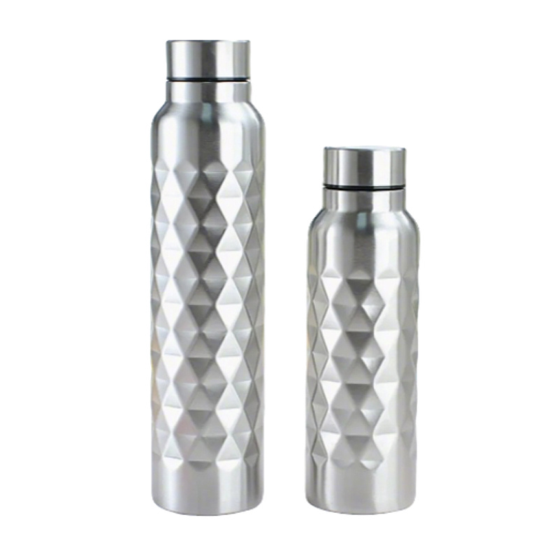 Botella de bebida de acero inoxidable con textura de diamante para deportes