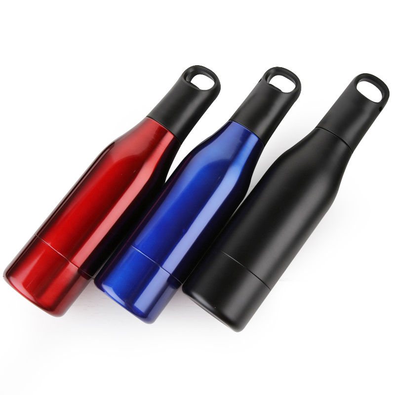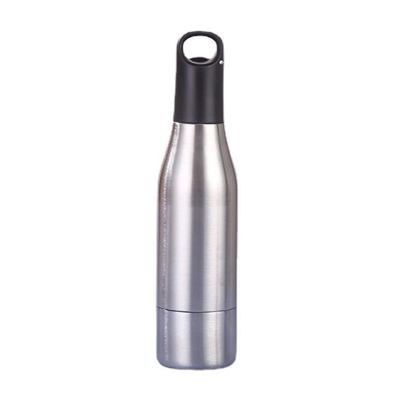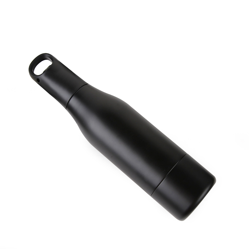 Con una capacidad de 500ml y forma de botella, la parte superior tiene una tapa negra con asa de anilla. El diseño general es simple y fácil de transportar. Este tipo de recipiente se puede utilizar para bebidas embotelladas y tiene la función de mantener el frío. Es adecuado para uso recreativo y puede brindar comodidad para la experiencia de beber.