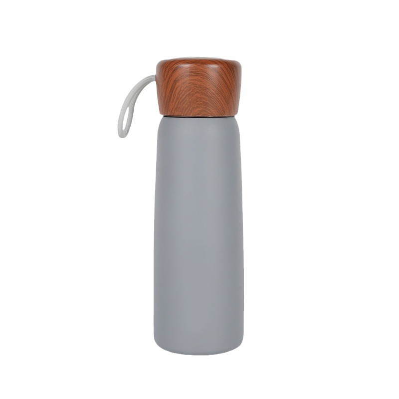 Mantiene la temperatura mediante tecnología de vacío de acero inoxidable, preservando de manera confiable el calor del té en invierno y el frescor de las bebidas heladas en verano. Disponible en negro, blanco, plateado o gris, el acabado mate con una tapa con vetas de madera vintage lo convierte en un elegante accesorio urbano para los viajeros y un compañero perfecto para el ocio al aire libre.