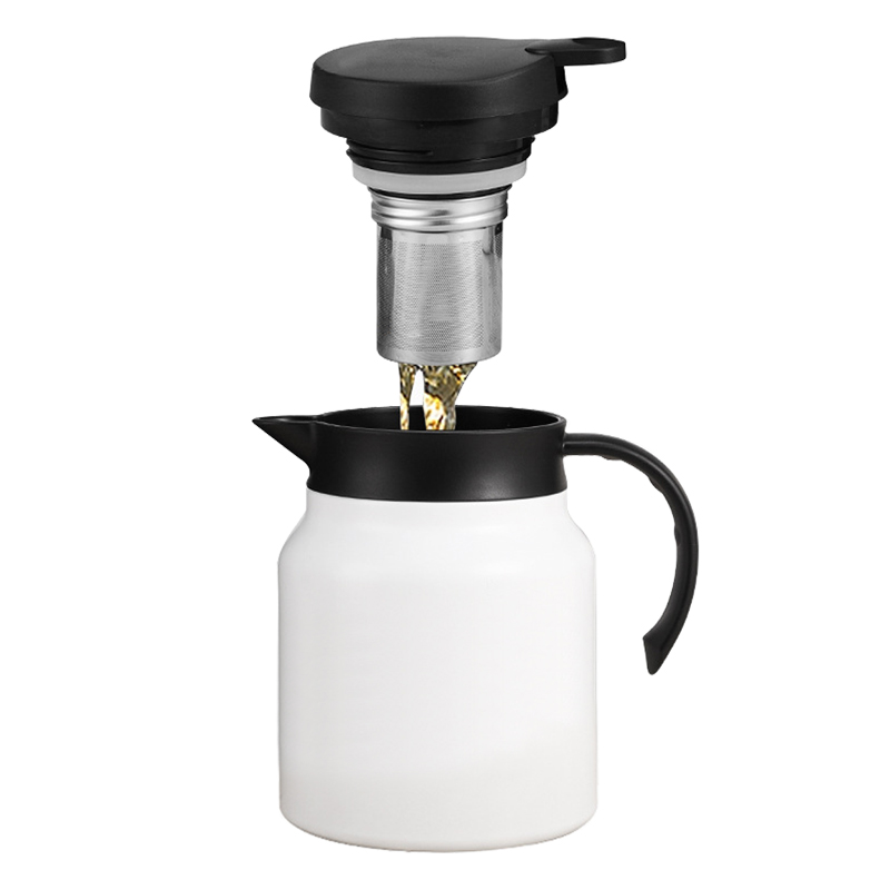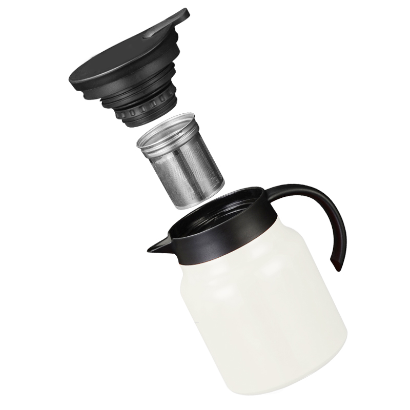La característica más destacada es su filtro de té de acero inoxidable incorporado, que elimina la necesidad de utensilios adicionales. Este diseño separa sin esfuerzo las hojas de la infusión, lo que garantiza que cada sorbo proporcione esencia de té pura. El mango antideslizante proporciona un agarre cómodo, mientras que la boquilla de un toque garantiza un vertido constante sin derrames. La tapa fácil de operar libera agua con una sola presión, lo que hace que la hora del té sea suave y elegante.