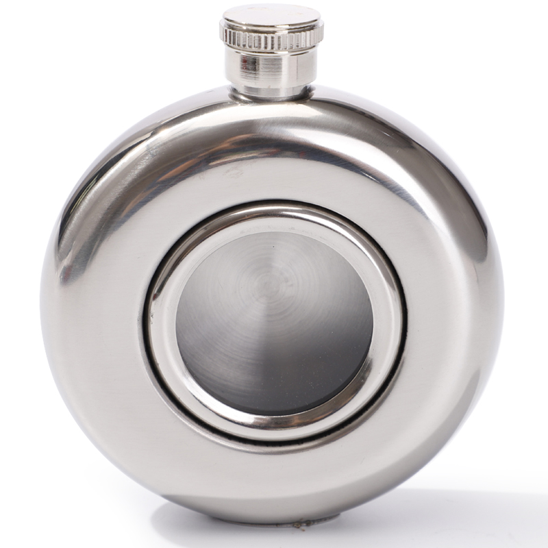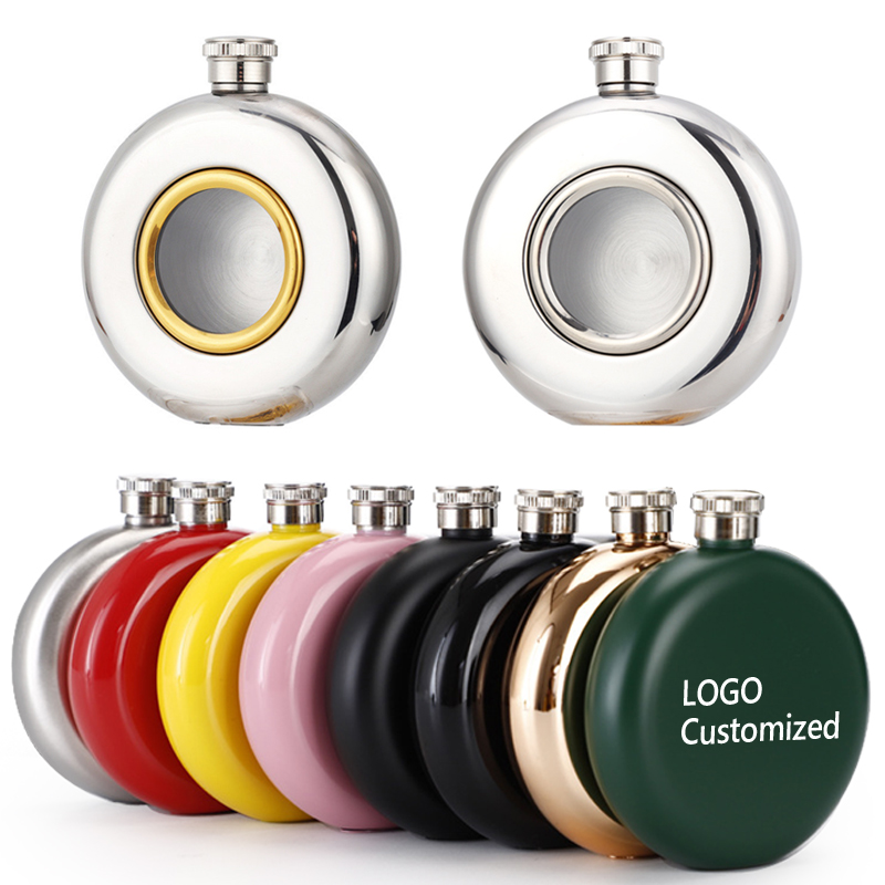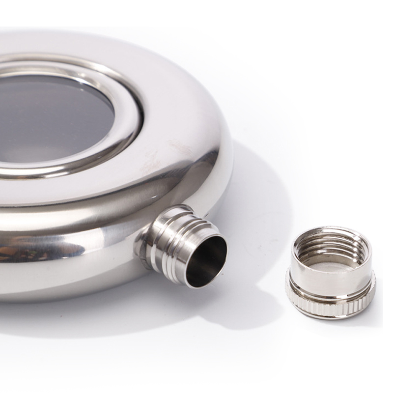 Forma redonda única: a diferencia de la vinoteca cuadrada común, esta vinoteca portátil redonda de acero inoxidable tiene una forma única y líneas suaves. Se ve diferente ya sea que lo sostengas en la mano o lo coloques en un bolso, y es llamativo.