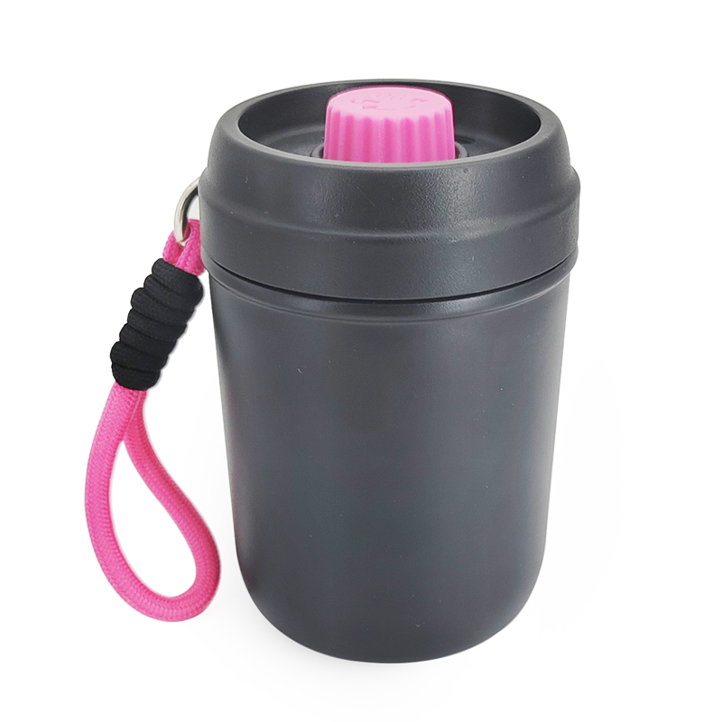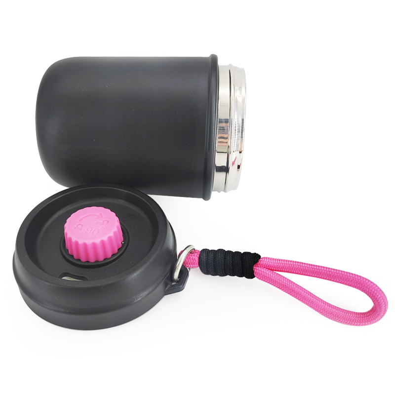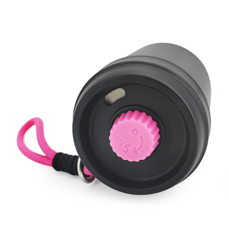 El diseño presenta una apariencia minimalista pero práctica, que combina una base gris oscuro con un mango rosado y tapa de perillas para el atractivo estético y la portabilidad. Hecho a partir de 304 acero inoxidable, ofrece una durabilidad segura con excelentes propiedades de aislamiento térmico. La tapa sellada previene efectivamente derrames, lo que lo hace ideal para transportar café durante los viajes diarios o almacenar bebidas y bocadillos al aire libre, lo que ofrece la funcionalidad y la conveniencia.