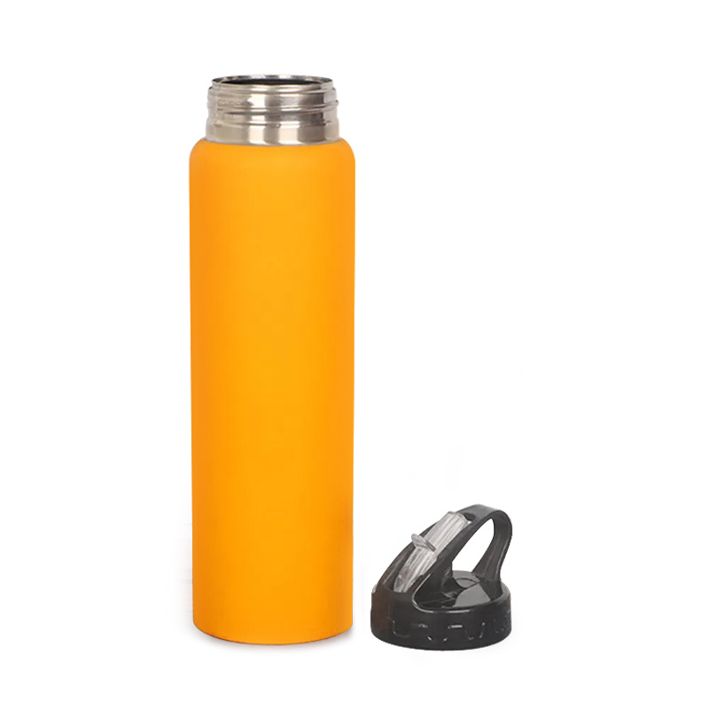 Esta botella de agua de una sola capa de acero inoxidable 304 viene con una tapa y paja, lo cual es muy práctico para actividades deportivas y al aire libre.