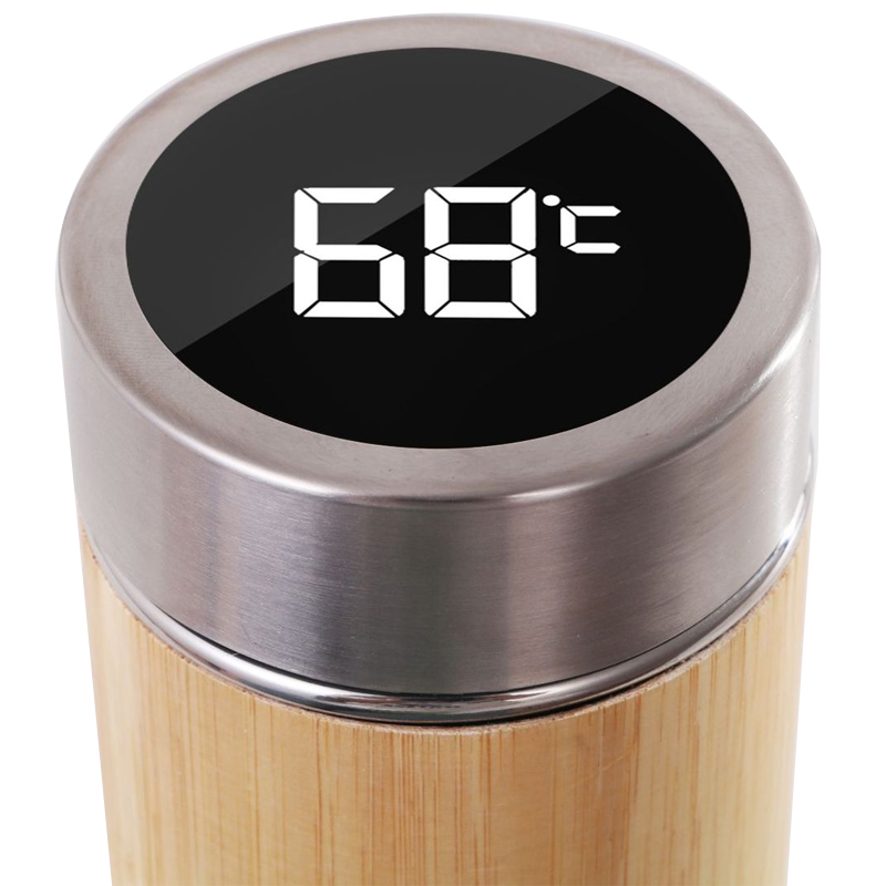 Taza aislante con estampado de bambú y cubierta para mostrar la temperatura