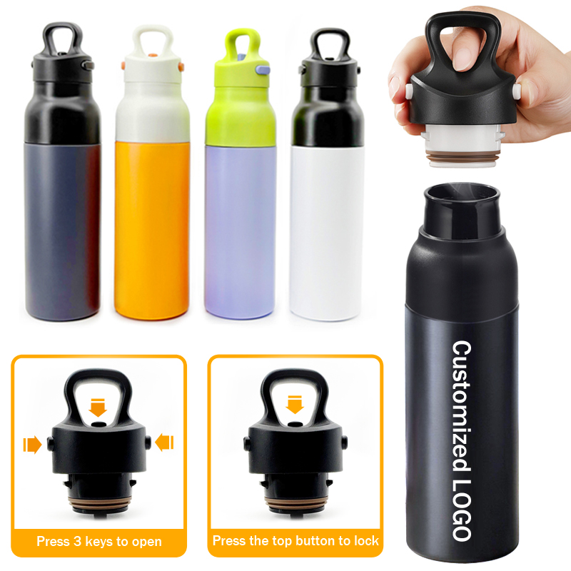 Esto demuestra el mecanismo de operación de la tapa de un vaso de agua aislado montado en un automóvil. Al presionar el botón lateral se abre la tapa para beber cómodamente, mientras que el botón superior la cierra sin esfuerzo. El diseño de operación con una sola mano permite a los conductores beber agua cómodamente durante la conducción, minimizando las distracciones al manipular los vasos y mejorando la seguridad. Además, el cuerpo de acero inoxidable garantiza una excelente retención térmica.