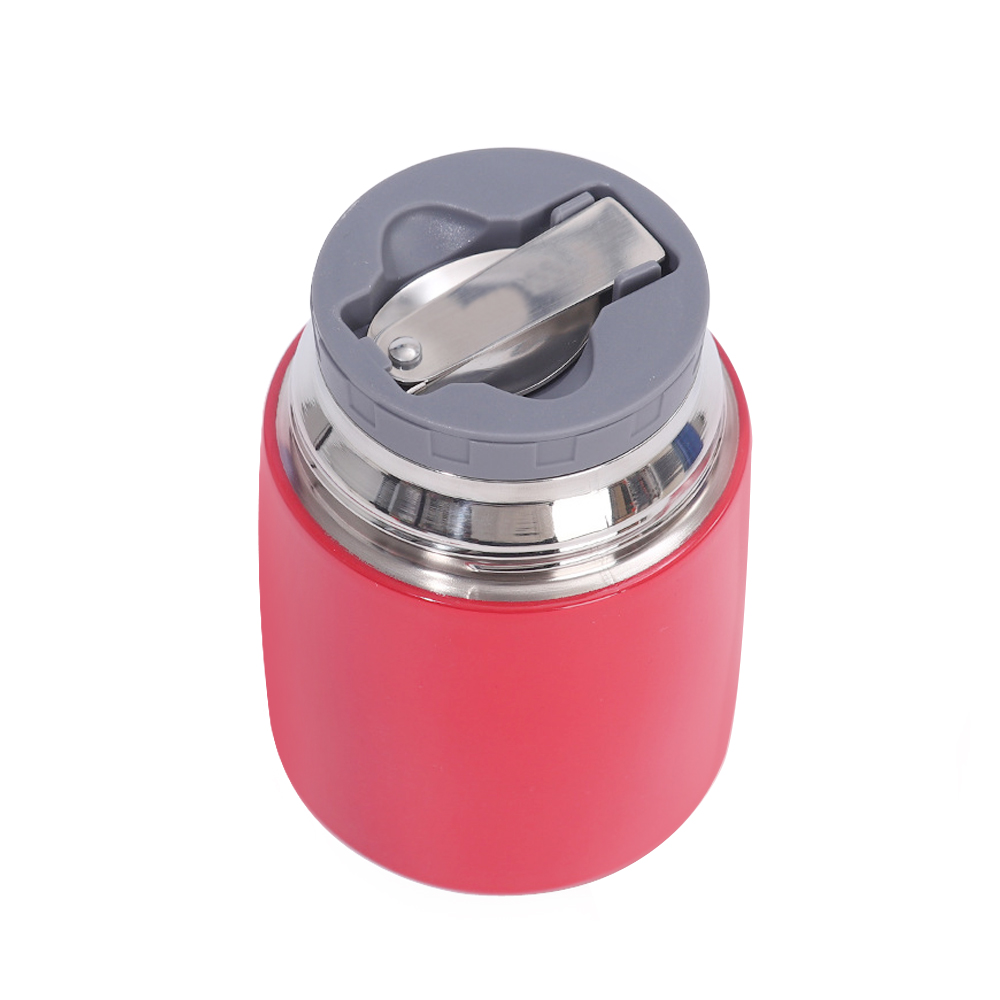 Los accesorios son prácticos: la tapa de la taza contiene una cuchara de metal plegable para una comida conveniente; La tapa de la taza también se puede usar como un tazón pequeño, y el diseño del mango de naranja es fácil de recoger, satisfaciendo las necesidades de comidas al aire libre o fuera de casa.