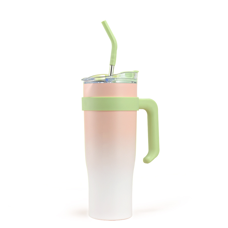 La colección presenta múltiples opciones de color, incluidas combinaciones vibrantes de gradiente verde, azul y blanco combinados con varios diseños de mango y bandas decorativas. Cada taza viene con una pajita conveniente para beber y una tapa higiénica que asegura un fácil acceso durante el uso. Disponible en múltiples variaciones de color, también ofrecemos pedidos personalizados para pequeñas cantidades.