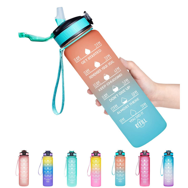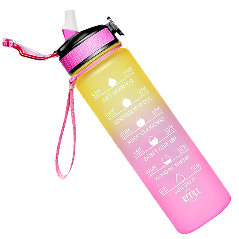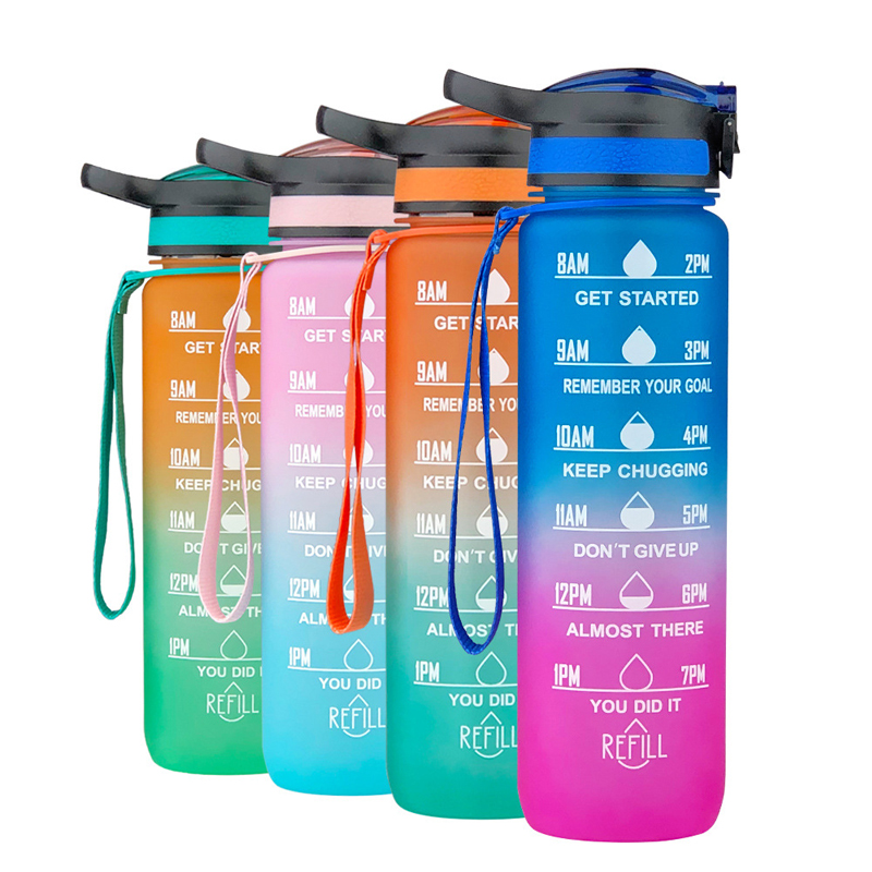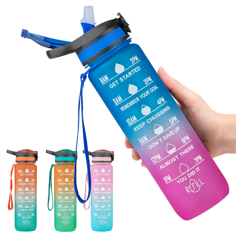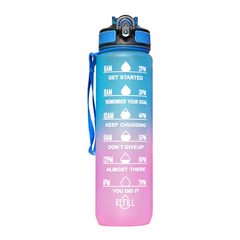 Esta botella de agua deportiva de 1000 ml combina las características de un vaso espacial de plástico y una jarra de viaje para exteriores con un diseño de color degradado. Su elegante aspecto degradado lo hace perfecto para llevar durante actividades al aire libre, satisfaciendo tanto las necesidades de hidratación diaria como las exigencias del ejercicio físico.