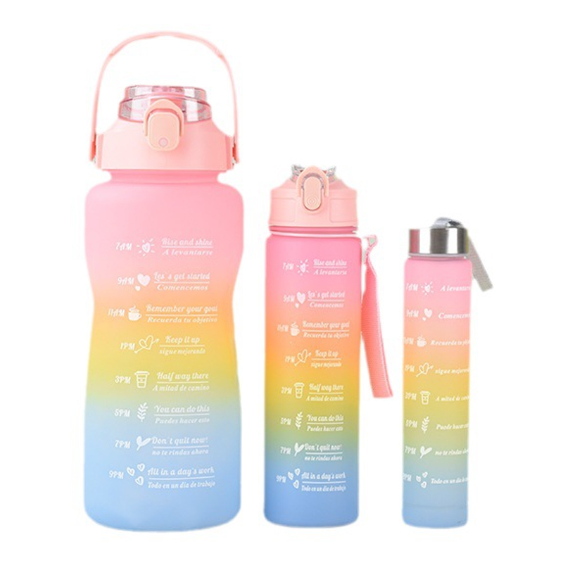 El vaso de 200 ml cuenta con un asa con marcadores de tiempo de 7 a. m. a 9 p. m. y citas motivadoras, perfecto para actividades prolongadas al aire libre o entrenamientos. El vaso de 900 ml viene con una correa para colgar y muestra escalas de tiempo de 8 a. m. a 7 p. m. junto con mensajes inspiradores, lo que lo hace conveniente para el uso diario y ayuda a mantener las rutinas de hidratación. La taza compacta de 300 ml con marcas de medición claras es ideal para viajes cortos o necesidades de hidratación ligera.